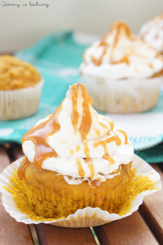 Pumpkin Caramel Cupcakes with a meringue frosting