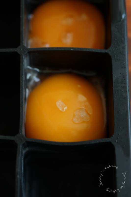 #Freezing egg yolks is a bit tricker, add a bit of salt or sugar to each yolk as they tend to dry out otherwise. Just as with egg whites, I like to freeze each separately in ice cubes, see picture. They also keep for about three months. When ready for use, thaw in fridge.