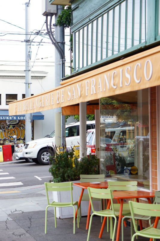 Mein zweites Lieblingscafé in San Francisco wurde mir von unserem Gastgeber empfohlen, auch La Boulangerie hat, wie der Name schon sagt, viele französisches Kleingebäck im Angebot, allerdings habe ich mich gar nicht so sehr an den Croissants, Brioches und ähnlichem gütlich getan, sondern mich auf das Frühstück gestürzt. Als ich sah, dass ich meine geliebten „rolled oats“, also Haferflocken mit Früchten, Nüssen und wenn man mag auch mit veganer Milch bestellen konnte, war es um mich geschehen. Ja, ich bin nun auch wild entschlossen diese interessante Mischung zwischen körnigen Haferflocken, die aber irgendwie gleichzeitig zart sind, hinzukriegen, die dann in Milch aufgekocht werden, aber im Gegensatz zu rolled oats nicht über Nacht stehen bleiben, sondern frisch verzehrt werden. Sollte das klappen, werde ich natürlich umgehend berichten.