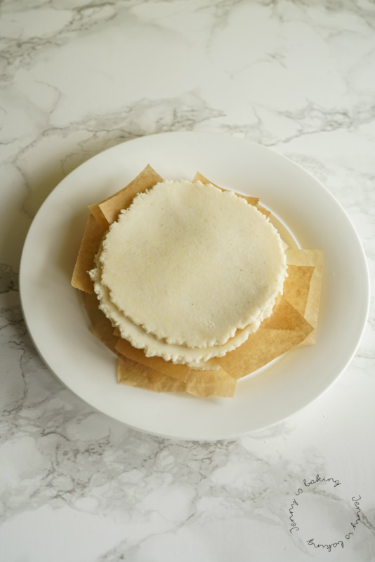 - Also, once you pile them up, be sure to use a stripe of parchment paper in between, you don’t want them to stick together.