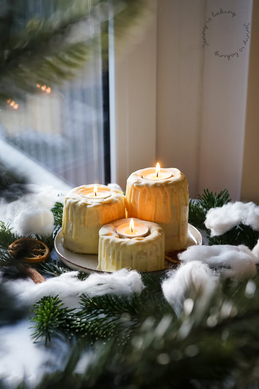 If you are going for a dark frosting, white mushrooms made from meringue are perfect to create a winter atmosphere. And of course I have a recipe on the blog as well. The recipe for the yule log can be found here.