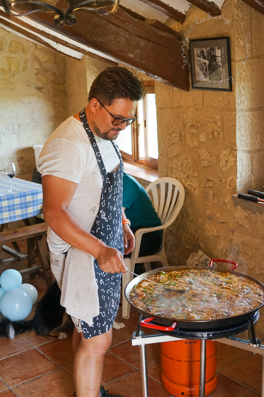 Bam, so I am turning 40 today, wow. I am old, suddenly all these terms pop up, such as middle-aged, half time, mid-life crisis, not very encouraging, don’t you think? But I can’t change the fact that I am 40 now. So I figured, OK, so be it, I guess I will have to deal. When we were on holiday in Spain end of July, I asked my in-laws if we could pre-celebrate my birthday, they complied. We had paella, which was prepared by my brother-in-law (thank you again!) and since we couldn’t decide for a flavor, we went for paella mixta, so it had it all,  rabbit, chicken, and seafood. I was responsible for dessert (of course) and decided to make tarte tatin with apricots. We drank wine, which is a given in the wine region, we had a wonderful scenery with vineyards and a river, it was just so wonderful! Thanks to my in-laws for this wonderful experience: fue un placer, muchísimas gracias!