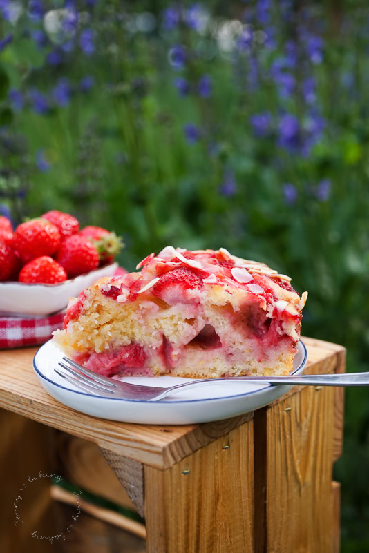 P.S. If you are interested in some other simple cake, how about this simple cherry cake (on the left) or this strawberry cake with almonds ( on the right).