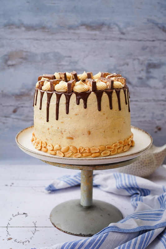 Yay, today I am introducing this decadent Snickers cake to you! This means you will get moist chocolate cakes brownie style, peanut caramel, peanut buttercream and some more additional chocolate. Imagine a Snickers in cake form, I am telling you, this cake is so delicious. But be warned, this cake has a lot of components, so it will take some time to prepare. The good thing though is that you can make some components in advance or even freeze the entire cake. Yes, this is definitely a decadent cake, if you are counting calories, stay away from it. I gave away almost all of it as it is only the two of us. But I had to try and I did enjoy one full piece of this Snickers cake. I am not a fan of diets, I always say, you can eat everything in moderation. This means you may only eat one small piece for a special occasion. But if you are a Snickers fan, this cake is definitely for you! My hubby and me both enjoyed this cake immensely.