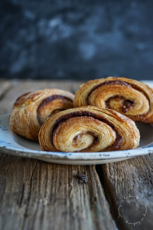 Kanelbullar consist of an enriched yeast dough. They are filled with soft butter and a mix of cinnamon and cardamom. Each pastry is first cut into a long stripe and then twisted before you twirl it. If you want to make them, you may even consider making them for breakfast. I would say it takes between two or two and a half hours before you can bite into one and enjoy it with tea or coffee.