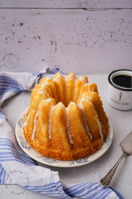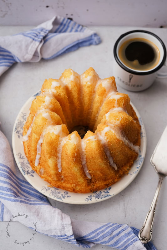 This is a moist lemon bundt cake, which comes together quickly. Most of the time is spent in the oven, baking. Did you know that today is the official bundt day? I didn’t and I am happy to say that I finally got round to making one again. This one contains yoghurt and stays fresh because of that. You can serve it with a little bit of lemon drizzle with a cup of coffee.