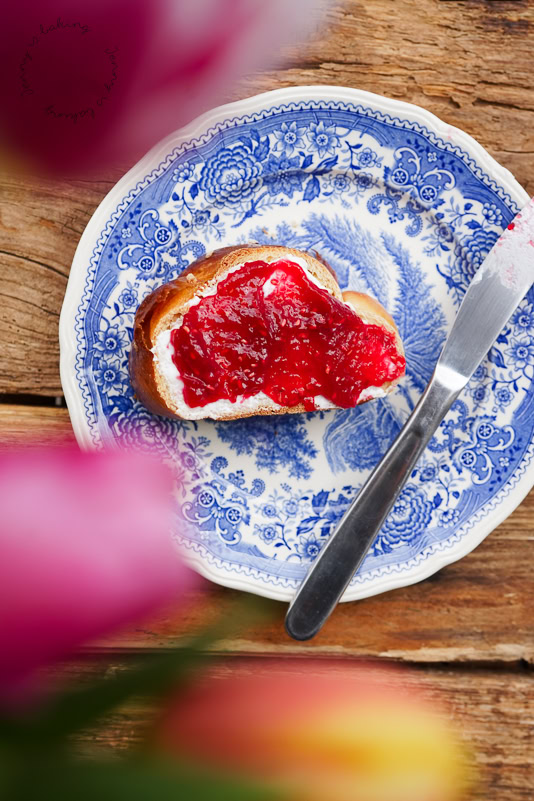 Once ready, preheat oven to 210 degrees Celsius, brush with egg wash and sprinkle with coarse sugar or sliced almonds. If you chilled your heart overnight, you can transfer it directly to the oven on a baking sheet, it doesn't need to come to room temperature. Reduce heat to 190 degrees and bake for about 30 minutes or until golden brown. As always, yeast products taste best on the day made. If kept airtight, it will keep for a few days.