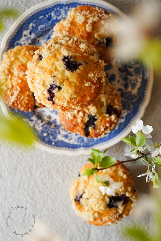 Lemon and blueberries simply are the best combination, for that reason I wanted to introduce these lemon blueberry muffins. I already have a lemon blueberry cake and lemon blueberry cupcakes on the blog, but I was still missing a great muffin recipe. I decided to serve them with crumbs, you may also sprinkle with sliced almonds or leave the crumbs out and serve plain. I personally liked them best with crumbs.