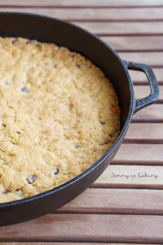 Liebe Leute, heute wird mit einem Krümelmonster-Riesen-Keks gefeiert! Einige haben es auf Facebook mitbekommen, ich hatte vor kurzem einen ziemlich krassen Fahrradunfall. Ich erspare euch lieber die Details, aber sagen wir so, fast eine Woche Krankenhausaufenthalt und vier Wochen zu Hause krankgeschrieben zeigen vielleicht, dass der Unfall nicht ganz ohne war. Ja, und da musste ich also ziemlich lange das Bett hüten und mir war nach Comfort-Food. Cookies gehen ja zum Glück schnell, dieser besonders, weil man keine einzelnen Cookies formen muss, sondern einfach alles in eine große ofenfeste Pfanne packt.