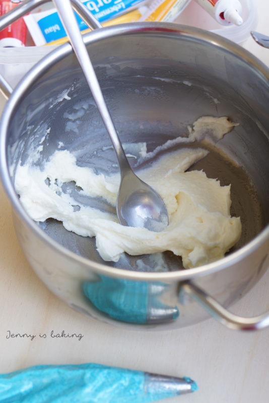 Ursprung: Riesenkeks von Sally’s Baking Addiction (auf Englisch) und Buttercreme für das Krümelmonster The Though Cookie (auf Englisch)