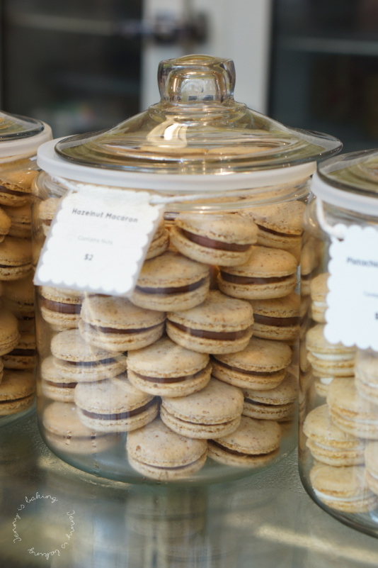 Als erstes vorstellen möchte ich kurz das Miette, das sich in der Nähe des Pier 39 befindet und deshalb von Touristen gut frequentiert wird. Inspiriert hat mich die Gründerin Meg Ray, die tatsächlich ihre Köstlichkeiten zunächst lokal auf einem Markt in Berkeley verkaufte, bevor sie nun sage und schreibe drei Geschäfte in San Francisco eröffnet und auch ein Patisserie-Backbuch herausgegeben hat. Besonders geschmeckt haben mir die Schoko-Cupcakes mit Kaffeecreme, auch wenn die Gingerbread-Cupcakes als die besten des Landes ausgezeichnet wurden. Wie ihr an den Bildern seht, gibt es viele franzsösische Sachen, Macarons, Tartelettes, etc., aber alles überraschend „normal“ gesüßt, zumindest bekommt man keinen Zuckerschock wie sonst bei allen süßen Sachen in USA. Ein Rezept von Miette habe ich fest vor hier auf meinem Blog irgendwann zu veröffentlichen, dazu dann aber an anderer Stelle mehr.