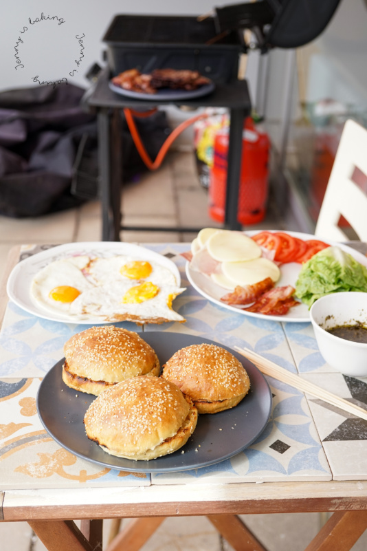 Damit Chivito so richtig gut schmeckt, habe ich selbst die Hamburgerbrötchen vorbereitet. Der Teig wird am Vorabend zubereitet und ich habe gute Nachrichten, denn hierfür braucht man keine Küchenmaschine, es ist ein sogenannter „no-knead“ Teig, den man nur etwas zusammenrührt und dann einfach gehen lässt. Natürlich kannst du Chivito auch mit gekauftem Baguette zubereiten, aber wenn wir hier schon die Grillsaison eröffnen, dann so richtig! Und bei diesen Brötchen muss man wirklich fast nichts machen außer zu warten.
