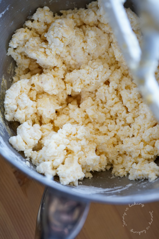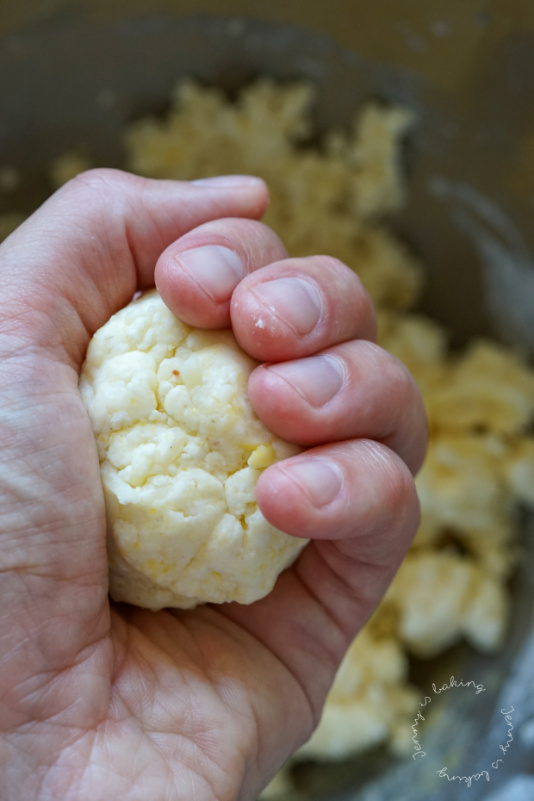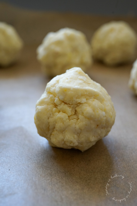 Ich fand dann aber nach einigem Probieren endlich heraus, woran es lag: dem Anteil der Milch. Das klingt jetzt so simpel, aber bis ich das herausfand… Das Geheimis ist, dass der Teig zwar so feucht sein muss, dass man ihn in kleine Bällchen rollen kann, aber gleichzeitig nicht so feucht, dass einem die Brötchen gleich zerlaufen. Weil es bei mir ziemlich lange gedauert hat bis ich die richtige Konsistenz gefunden habe, gibt es unten extra ein Bild. Damit dir nicht das gleiche passiert. Und deshalb die Bitte an dich: unbedingt genau darauf achten, dass man nicht zu viel und auch nicht zu wenig Milch verwendet, denn sonst passiert dir das gleiche wie mir.