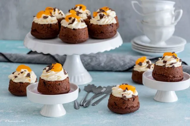 Schoko-Cupcakes mit Mandarinen und Frischkäsecreme vom Backmädchen 1967