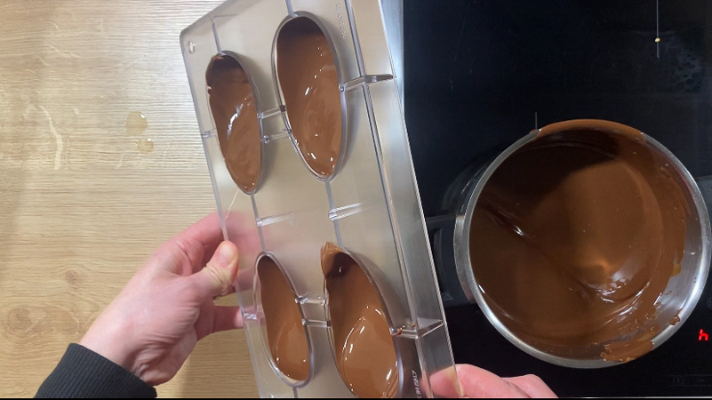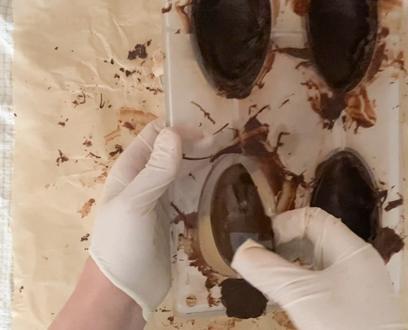 Achtung, wenn du diese Ostereier aus Schokolade nachmachen möchtest, plane viel Zeit ein und habe keine Scheu davor Schokolade zu temperieren. Ich muss zugeben, so richtig hochoffiziell habe ich hier auch das erste Mal Schokolade temperiert, aber so schlimm ist es nicht, man muss nur etwas Geduld mitbringen. Dafür wirst du dann mit meiner Meinung nach wunderschönen Eiern belohnt, die du super verschenken kannst und die auch als Deko total was hermachen. Ich plane das große Schokoei von 20cm bis nächstes Jahr aufzubewahren und dann neu zur Osterzeit aufzustellen. Ich berichte dann gerne. Diese Schokoladeneier waren eine Weile mein Abendprojekt nach der Arbeit. Ich fand es total entspannend zunächst erst die Blumen vorzubereiten und später dann die Eier aus Schokolade zu gießen. Am Ende habe ich die vorbereiteten Blumen auf die Eier mit weiterer Eiweißglasur geklebt und diese fertig dekoriert, es hat total viel Spaß gemacht.