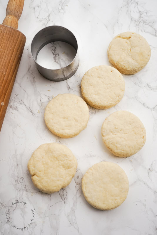 - Das Geheimnis für blättrige Scones, die schon hoch gehen, besteht aus drei Komponenten: 1. der Teig sollte touriert werden (also übereinandergestapelt werden, sodass man viele Schichten erhält), 2. beim Ausstechen sollte man niemals den Ausstecher im Teig drehen, sondern einfach nur gerade runterstechen und 3. sie müssen bei ziemlich hoher Temperatur gebacken werden, sodass das Backpulver seine volle Kraft entfalten kann.