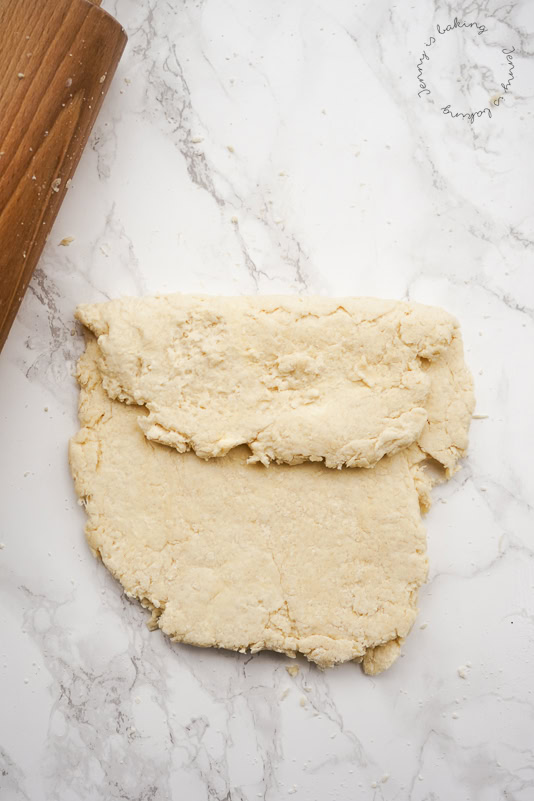 - Der Teig sollte nur kurz quasi zusammengeschoben werden, wenn er noch leicht krümelig ist, ist das in Ordnung.