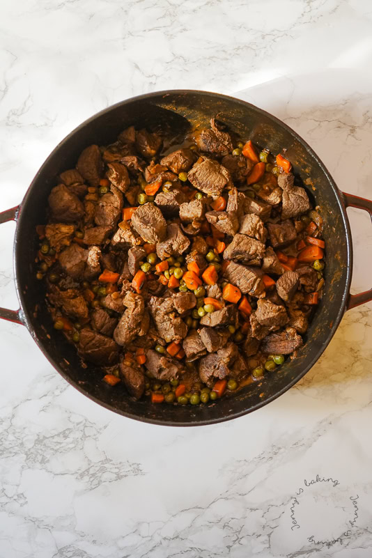 Hier habe ich Lammfleisch in Stückchen geschnitten, aber Warnung, das von allen Seiten kräftig anzubraten dauert deutlich länger