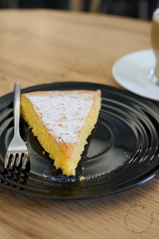 Natürlich haben auch wir in Santiago de Compostela die tarta gegessen, sie wird in jedem Café angeboten.