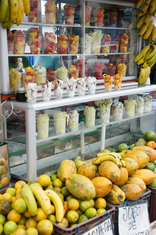 Eine tragende Rolle beim kolumbianischen Frühstück spielen auch Früchte. Die Früchtevielfalt Kolumbiens ist erstaunlich, ich habe es tatsächlich geschafft dreieinhalb Wochen jeden Morgen eine neue, mir noch unbekannte Frucht zu probieren. Für mich neu war auf dem Bild links „curuba“. Viele der Früchte sind hier gänzlich unbekannt, da sie viel zu schnell verderben und nicht exportiert werden können. In Kolumbien werden die Früchte nicht nur roh gegessen, sondern man macht gerne einen frisch gepressten Saft daraus. An jeder Straßenecke kann man Säfte und frische Früchte erstehen.