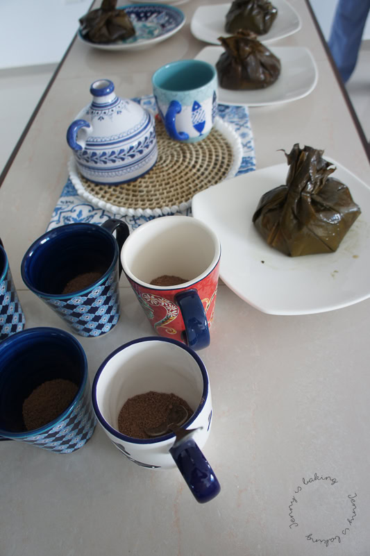 Ein weiteres typisches Frühstück: tamales, also in Bananenblättern gedämpfte Speisen mit einer heißen Schokolade