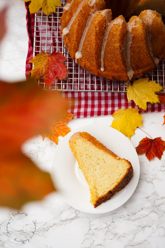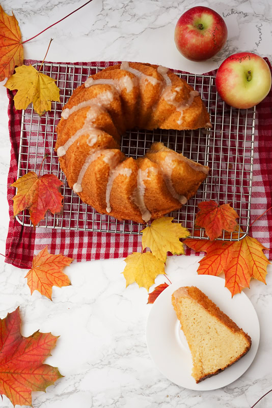Heute gibt es einen super saftigen Apfel-Zimt-Gugelhupf, der ist für mich Inbegriff des Herbstes pur. Äpfel gehören für mich in den Oktober, dieses Jahr finde ich den Herbst besonders schön, bei uns ist die Straße von den schönsten bunten Ahornbäumen gesäumt. Natürlich musste ich gleich Ahornblätter mitnehmen und mit auf dem Foto verwerten. Ich habe den Apfel-Zimt-Gugelhupf hier mit einem Zimt-Guss serviert, auch im Teig gibt es eine feine Zimtnote. Den Apfelmus habe ich tatsächlich selbst gemacht, das ist allerdings kein Muss.