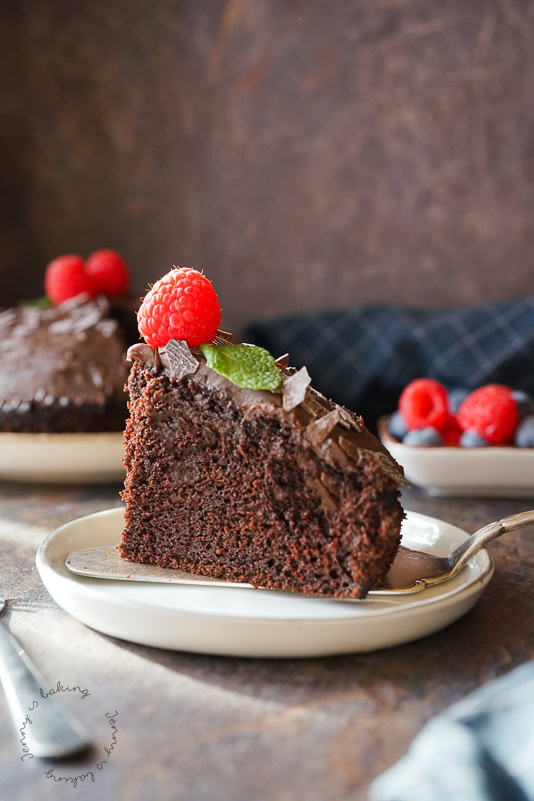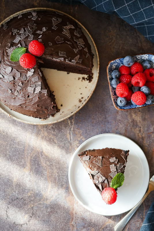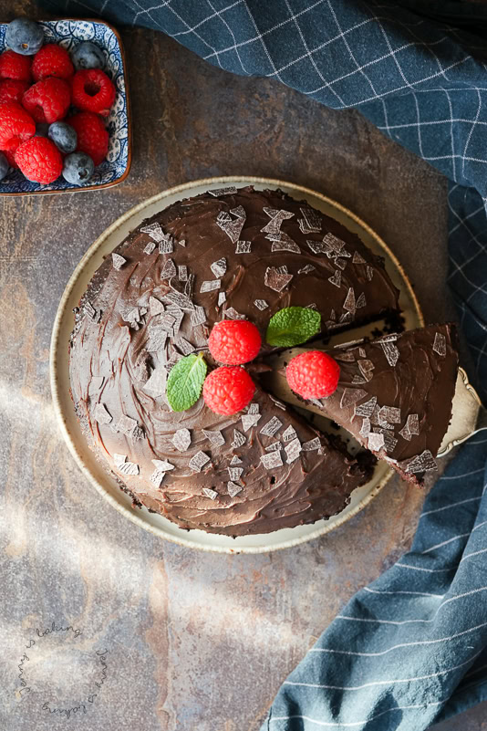 Jawoll, dieser Kuchen namens „bolo nega maluca“ heißt wörtlich übersetzt „Kuchen der verrückten Schwarzen“, angeblich, weil eine Sklavin wohl aus Versehen Kakaopulver in einen anderen Kuchen hineingab, aber niemand genau wusste, was sie dabei murmelte und es somit der verrückte Kuchen der Sklavin wurde. Sicherlich eine phantasievolle Anekdote, deren Wahrheitsgehalt fraglich ist. Fakt ist, dass dieser Schokokuchen aus Brasilien mit genau einer Schüssel auskommt, in wenigen Minuten zusammengerührt ist und er super zu einem Geburtstag oder besonderen Anlass zubereitet werden kann, wenn man nicht ganz so viele Gäste erwartet. Man kann ihn pur ohne Tränke und Topping einfach mit Puderzucker oder Kakao bestäubt servieren, wenn man wirklich ganz schnell sein will. Bei mir gibt es die Kleinversion, eine 18cm Springform, auch wenn er meist als Blechkuchen gereicht wird.