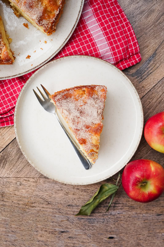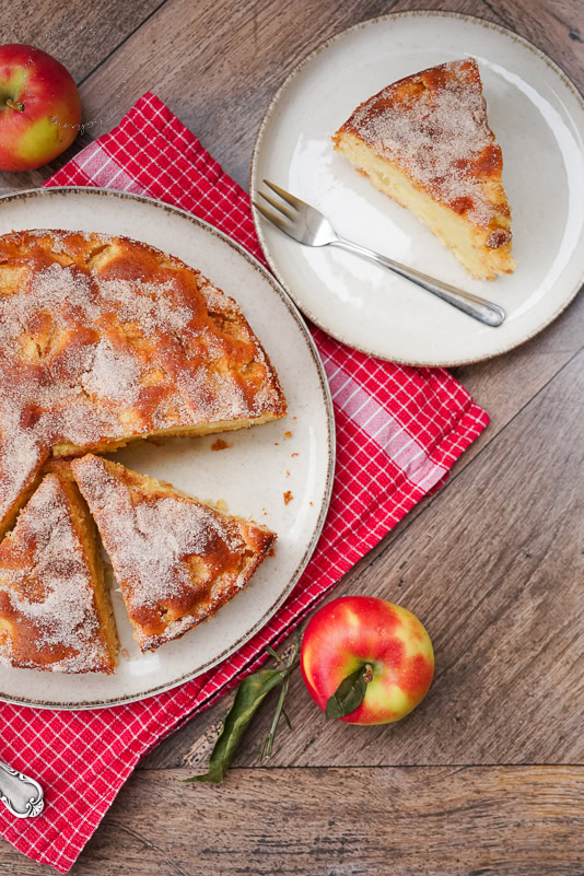 Dieser einfache Apfelkuchen mit Zimtkruste und ganz vielen Äpfeln ist ein Kuchen wie ich ihn liebe. Wenig Teig, aber umso mehr Äpfel. Ja, ein Kilo Äpfel muss man schälen und in Stücke schneiden, aber der Rest geht wirklich schnell, einen einfachen Rührteig erstellen, Apfelstücke unterheben und schon geht es in den Ofen. Besonders lecker finde ich persönlich diese Zimtkruste. Kurz vor Ende der Backzeit vermischen wir Zucker mit etwas Zimt, was dann obenauf auf den Kuchen kommt. Das karamellisiert dann so schön, so gut! Ich kann dich nur einladen diesen Kuchen nachzubacken, solange es weiterhin so schrecklich kalt ist.