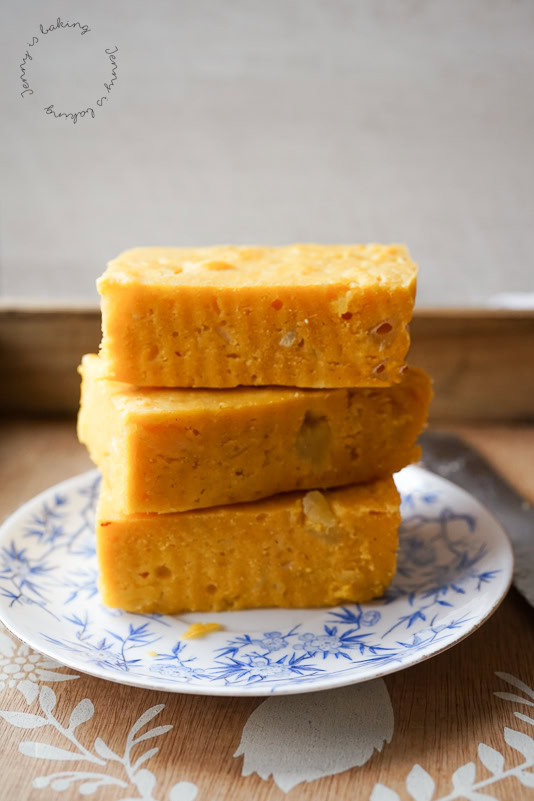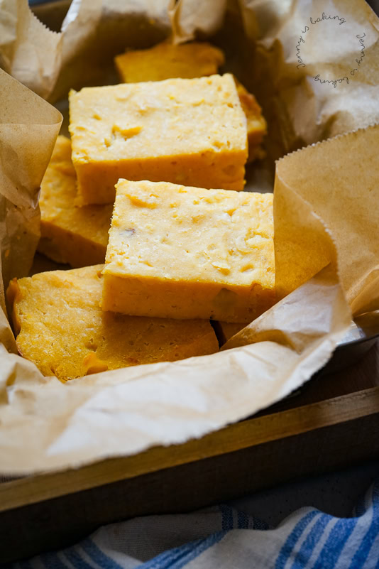 Sopa paraguaya, das Nationalgericht Paraguays, ist ein Maisbrot, das Zwiebeln und Käse enthält. Es ist von Natur aus glutenfrei. Die Zwiebel schälen, schön feinschneiden und mit dem Wasser und Salz auf niedriger Hitze mit Deckel ca. 10min köcheln. Dann abkühlen lassen. Derweil den Käse in kleine Würfel schneiden. Den Ofen auf 200 Grad Ober- und Unterhitze vorheizen, eine kleine Form (bei mir 16x24cm) mit Backpapier belegen. Die weiche Butter in einer großen Schüssel cremig schlagen, die Eier einzeln einrühren. Dann die abgekühlte Zwiebelmasse mitsamt dem Wasser und der Buttermilch kurz einrühren. Nun Maismehl und Backpulver hinzugeben und alles nur kurz verrühren. Den vorbereiteten Käse kurz einarbeiten und dann alles gleichmäßig in der Form verstreichen. Auf mittlerer Schiene ca. 35min backen oder bis die Oberfläche schon goldbraun aussieht. Am besten noch warm servieren. Sopa paraguaya macht sich gut zu Fleisch, Eintöpfen und Suppen und kann auch pur gegessen werden. Insbesondere zur paraguayischen Suppe Vori Vori kann ich die Beilage empfehlen. Auch zum Frühstück eignet sie sich. Man kann sopa paraguaya super einfrieren und für einige Tage luftdicht verpackt im Kühlschrank lagern.Sopa paraguaya - das Nationalgericht Paraguays