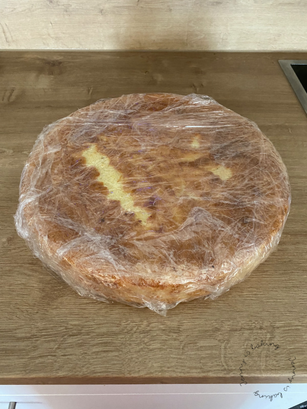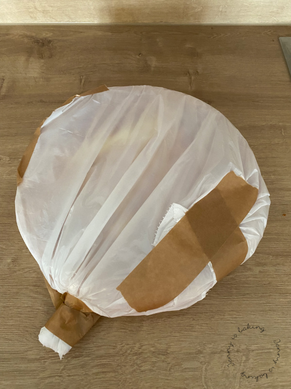 Die Tortenböden habe ich gut in Frischhaltefolie eingeschlagen und dann nochmal in eine Plastiktüte gewickelt
