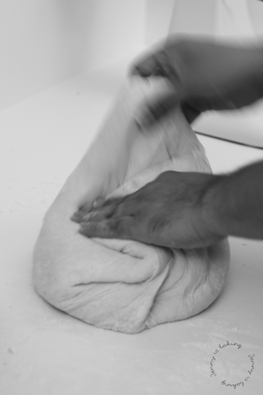 You may have wondered why I barely ever introduce bread on my baking blog as I do today with this Italian bread with semolina and olive oil. Yes, there are a few recipes, such as this farmer’s bread, these Danish buns with yoghurt, or homemade croissants. You may think that I mainly eat cakes and cookies, but that is definitely not true. There is a very simple reason why I barely publish bread recipes. The reason is my beloved hubby who is the master of bread-baking. He even has baking running in his blood, his grandfather was the baker of the entire village. So you can probably imagine that he is very good at baking bread, much better than me. Well, at least today. His beginnings were rather humble, I distinctly recall when I told him about the fact that yeast likes it warm and cozy. I also remember when we made our first yeast bread together. He very awkwardly punched the bread and asked me how I knew when the right consistency was reached.
